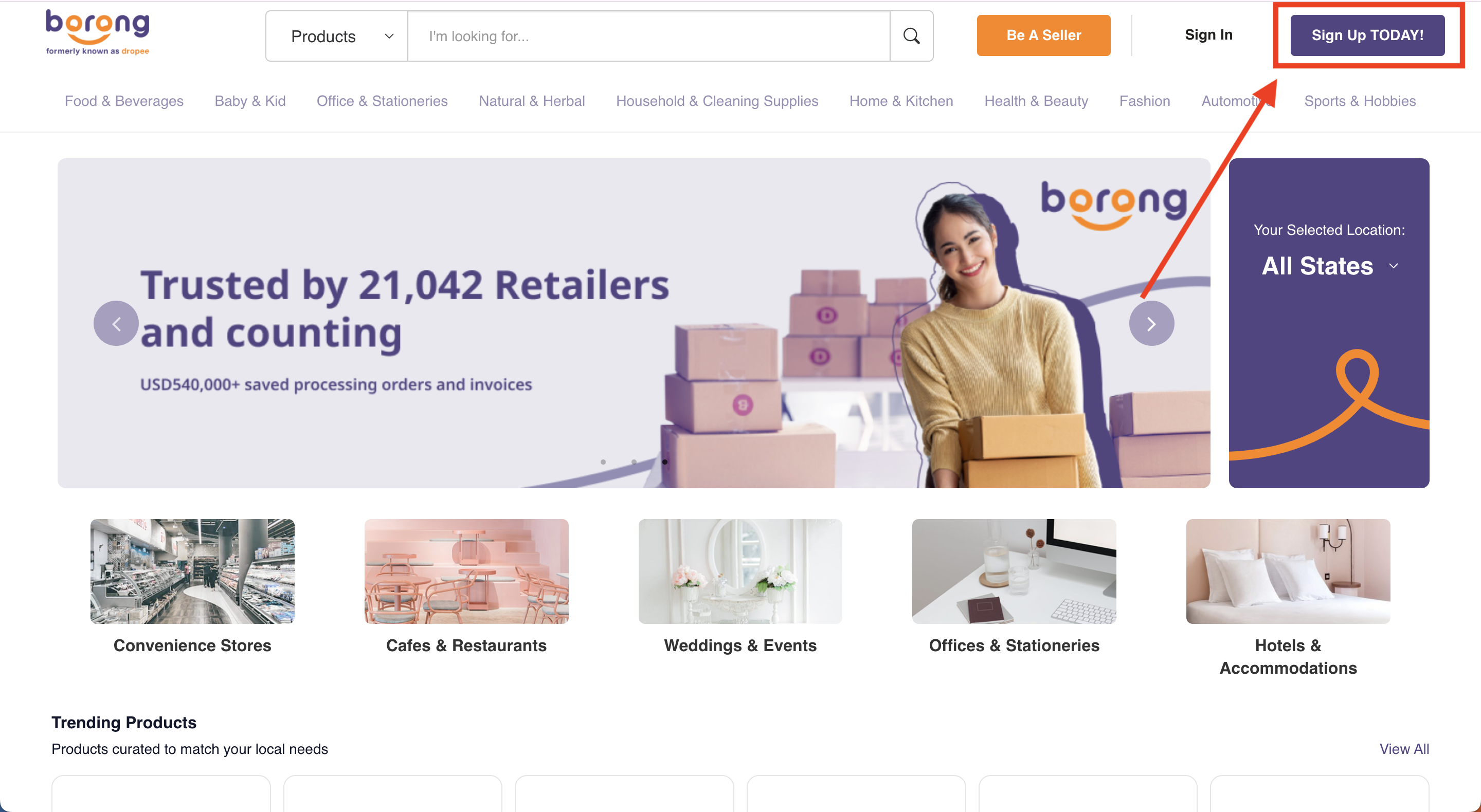 Today, we have over 10,000+ sellers on Borong, ranging from Food & Beverages to Baby & Toy supplies. For the full list of categories, go here.