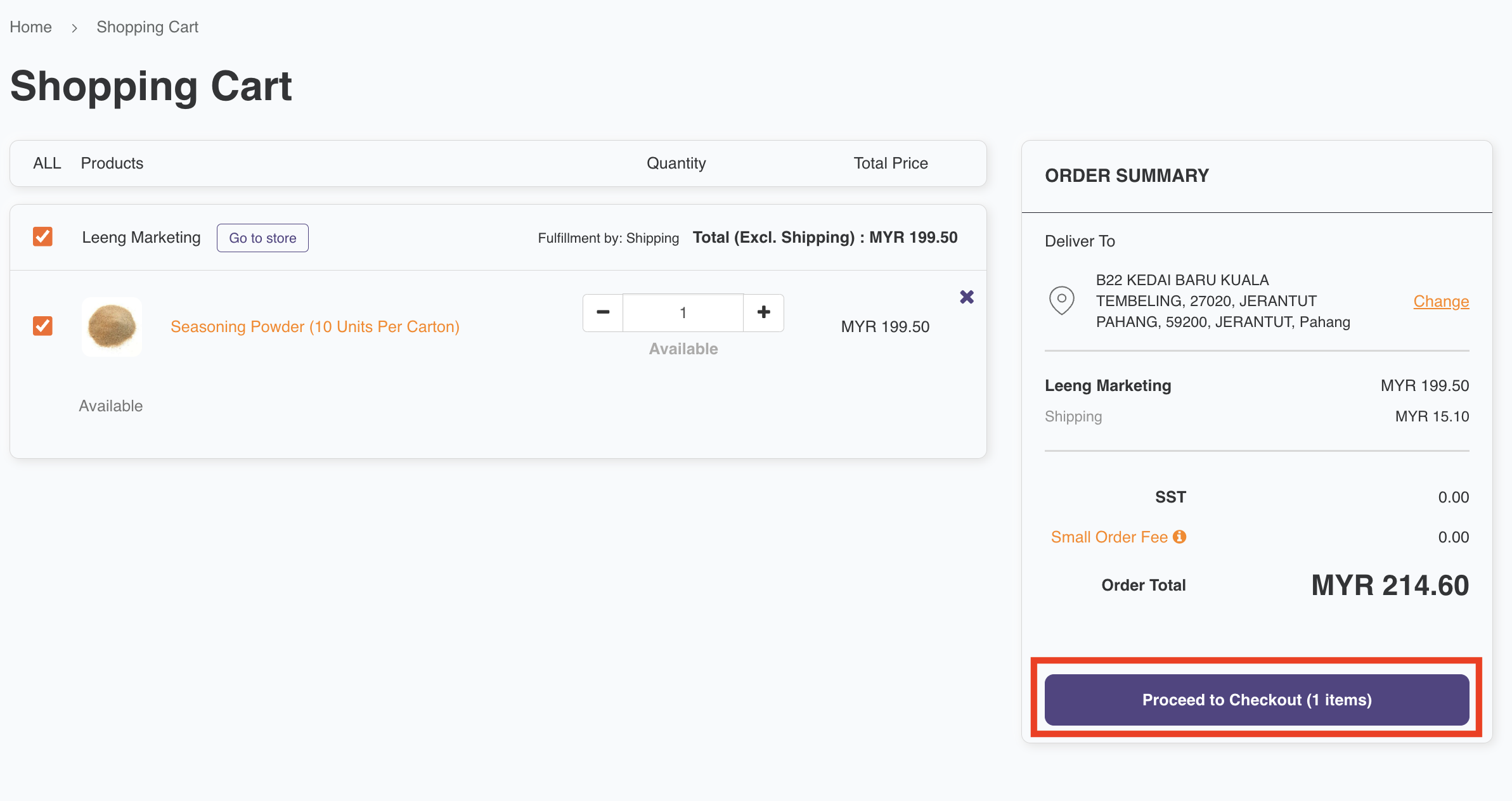4. Finalise your order (check cart items/quantity/shipping address)