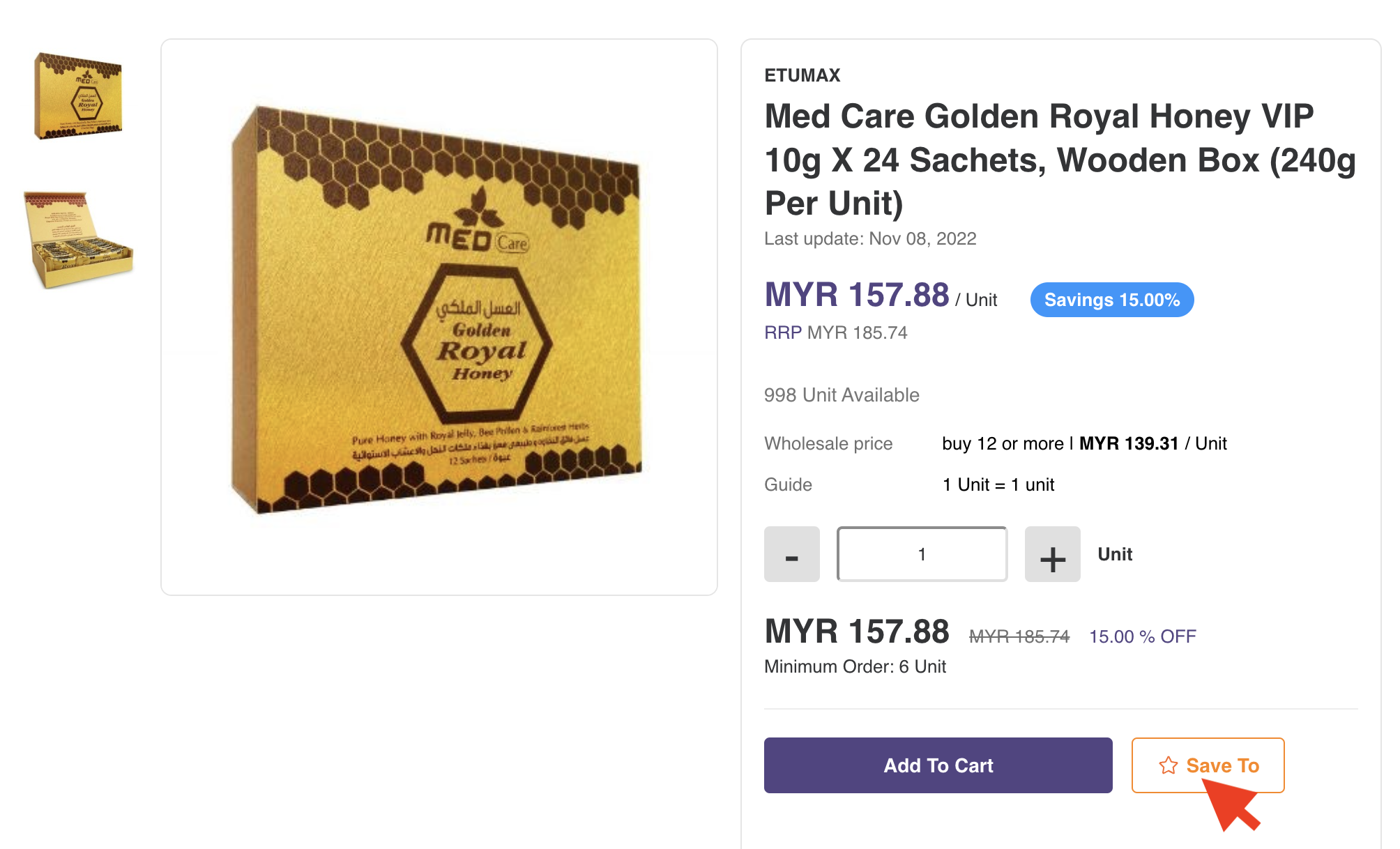 To do that, view the product you’d like to save, and click “Save to.”