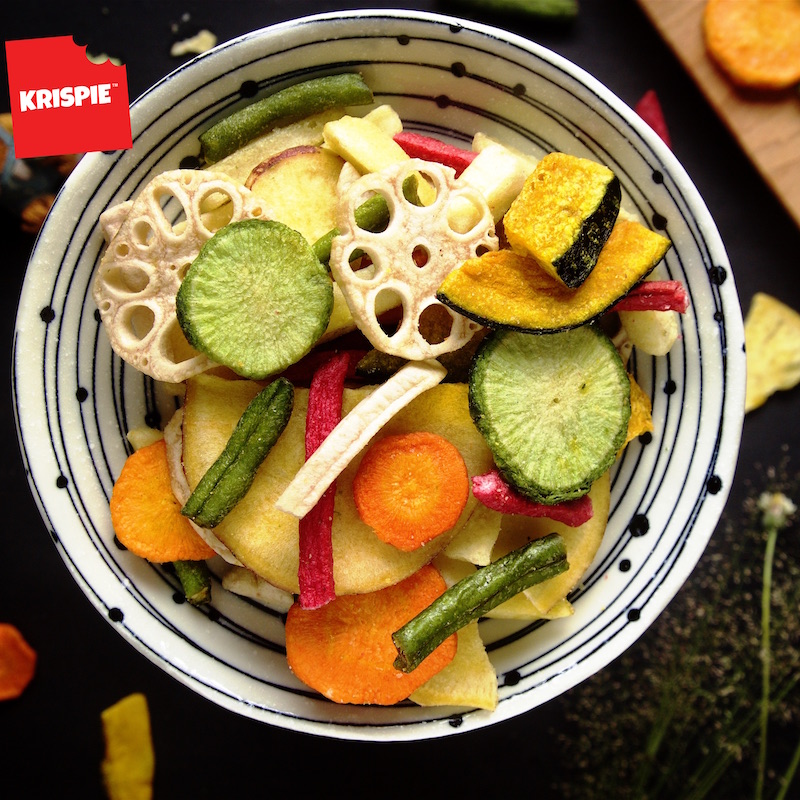 Ingredients : Sweet potato, potato, yam, pumpkin, carrot, red radish, green radish, lotus root, long bean, vegetable oil, salt, maltose.