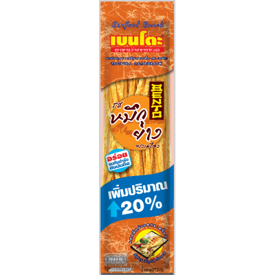 BENTO Fish is Thailand famous seafood snack. Hot and Spicy taste contain High-quality squid mixed with fish meat. Three flavor available Spicy Squid Fish, BBQ and Japanese Soy Sauce.