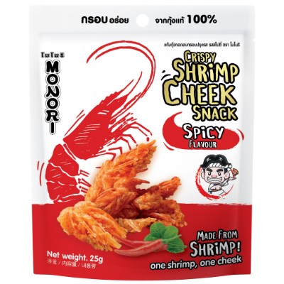 Monori is Chef Seafood. Use materials are excellent and never stop to develop new recipes from seafood. This time comes with, 100% Shrimp Cheek Snack, fried, crispy, delicious, clean, hygienic, contains High Calcium, Vitamin E in one pack. Can eat with drinks All kinds, eaten with noodle or will you be a good snack. Ingredients: Shrimp cheeks, seasoning powder, rice bran oil, fried dough.