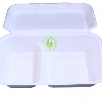 Similarly, biodegradable food packaging should be of sturdy quality. As such, our biodegradable 2 compartment food containers are an ideal choice. Made of sugarcane bagasse, the 2 compartment disposable lunch box is white in colour.