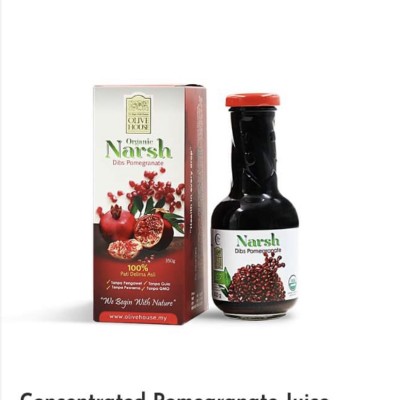 PATI DELIMA PEKAT 》100% Pati Delima tulin semulajadi 》Tanpa sebarang perasa tambahan, gula, pewarna tiruan, bahan pengawet kimia dan tanpa GMO 》USDA Organic 》Organic European Standard 》Sjil Halal MANAFAAT KESIHATAN 》Anti radang 》Membantu merawat sengal badan, sakit pinggang dan lutut 》Memberi ketahan kepada tubuh badan 》Yang menhidap anemia, darah tinggi dan masalah pada sistem urinari CARA PENGAMBILAN 》1 sudu besar dimasukka dlm 200ml air kosong atau boleh diambil terus sbanyak 1 sudu besar selepas makan 》Simpan dalm peti sejuk selepas dibuka.