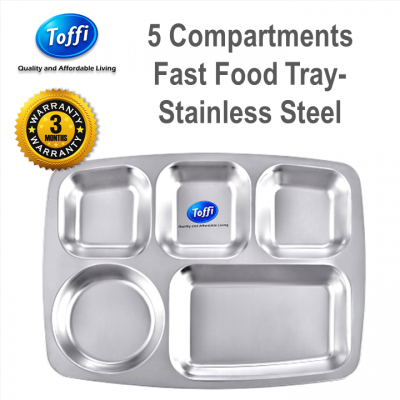 [Toffi] 5 Compartments Fast Food Tray/ 5 Kompartmen Makanan Segera- Stainless Steel Toffi (3 Months Warranty)