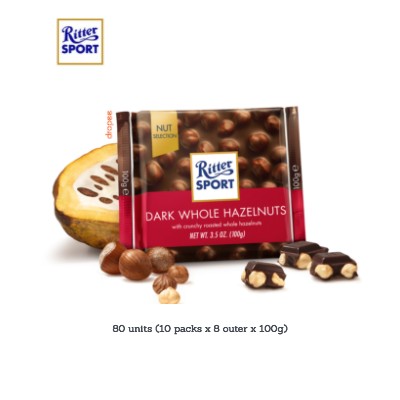 Dark chocolate with whole hazelnuts (25%). Dark chocolate: cocoa solids 50% minimum